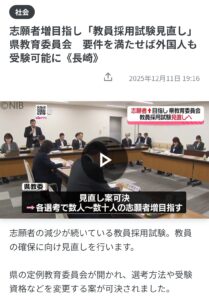 志願者増目指し「教員採用試験見直し」 県教育委員会 要件を満たせば外国人も受験可能に《長崎》